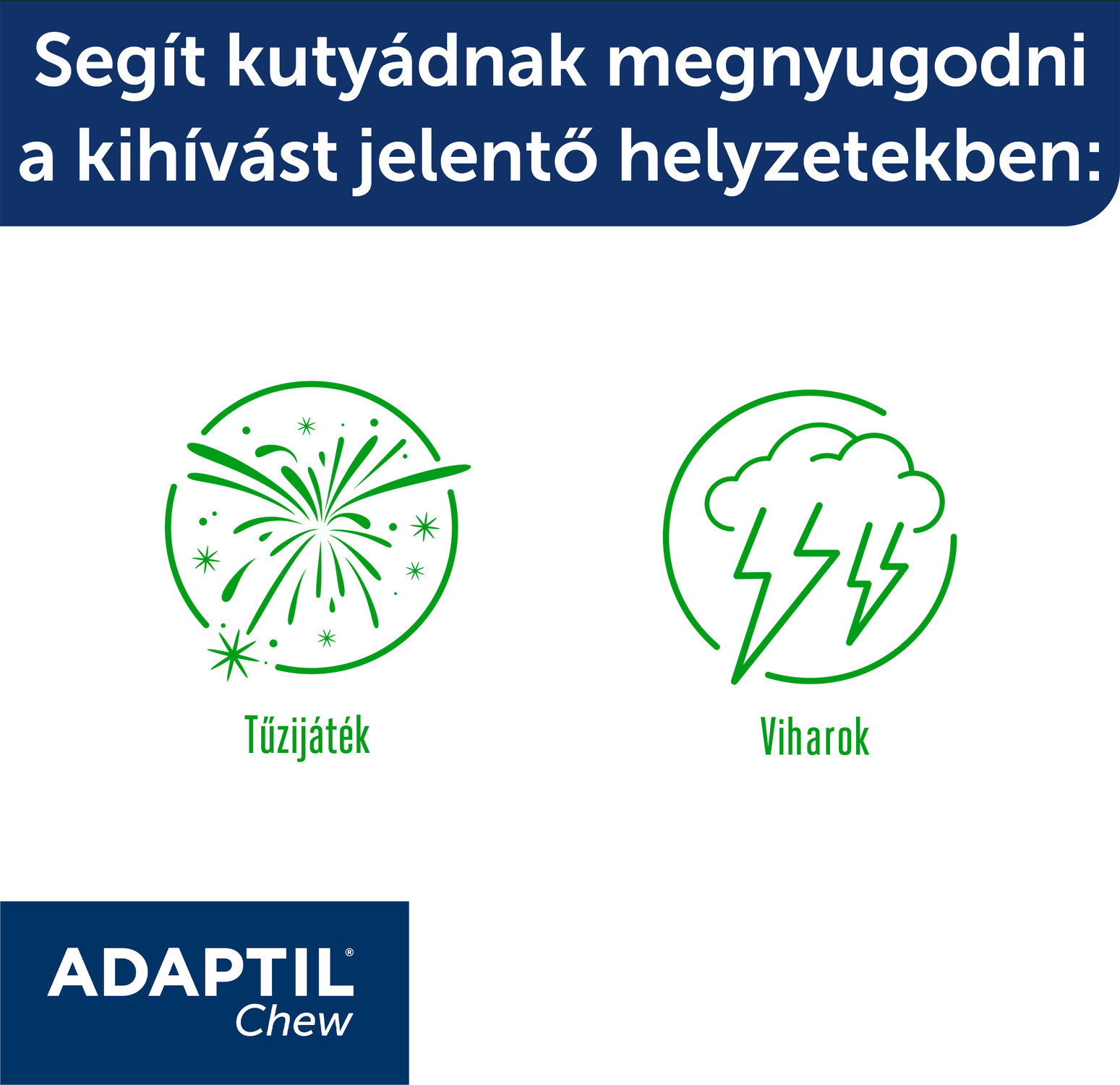 A kutyák életében számos olyan helyzet adódhat, amely feszültséget, bizonytalanságot vagy stresszt okoz. Az Adaptil Chew rágófalat alkalmazható többek között ijesztő zajok és helyzetek esetén, mint a tűzijáték vagy viharok idején, vendégek érkezésekor, utazáskor, állatorvosi látogatás vagy kozmetikai kezelés előtt.
