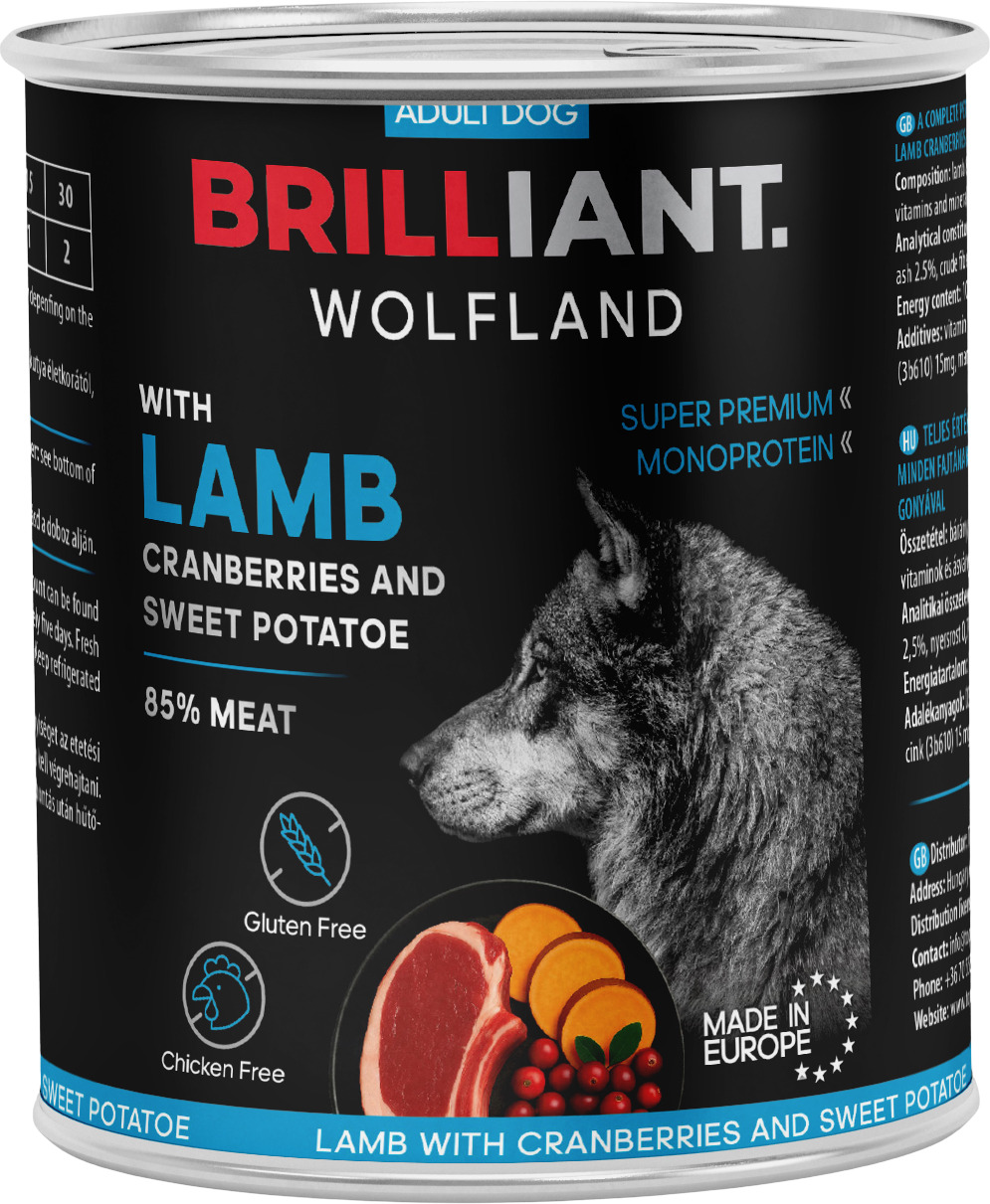 Brilliant Wolfland Monoprotein bárány & vörösáfonya‑édesburgonya nedves kutyaeledel