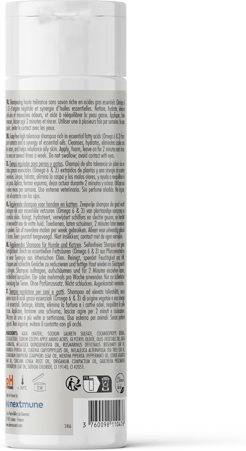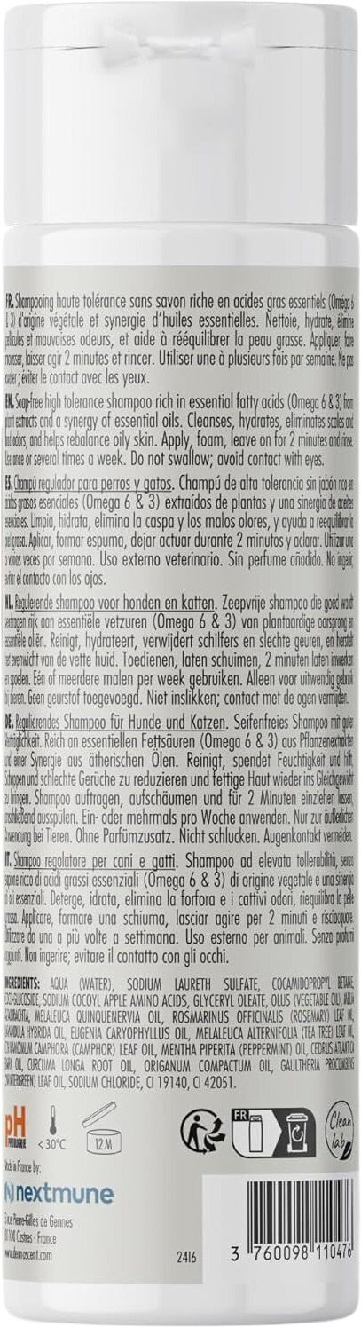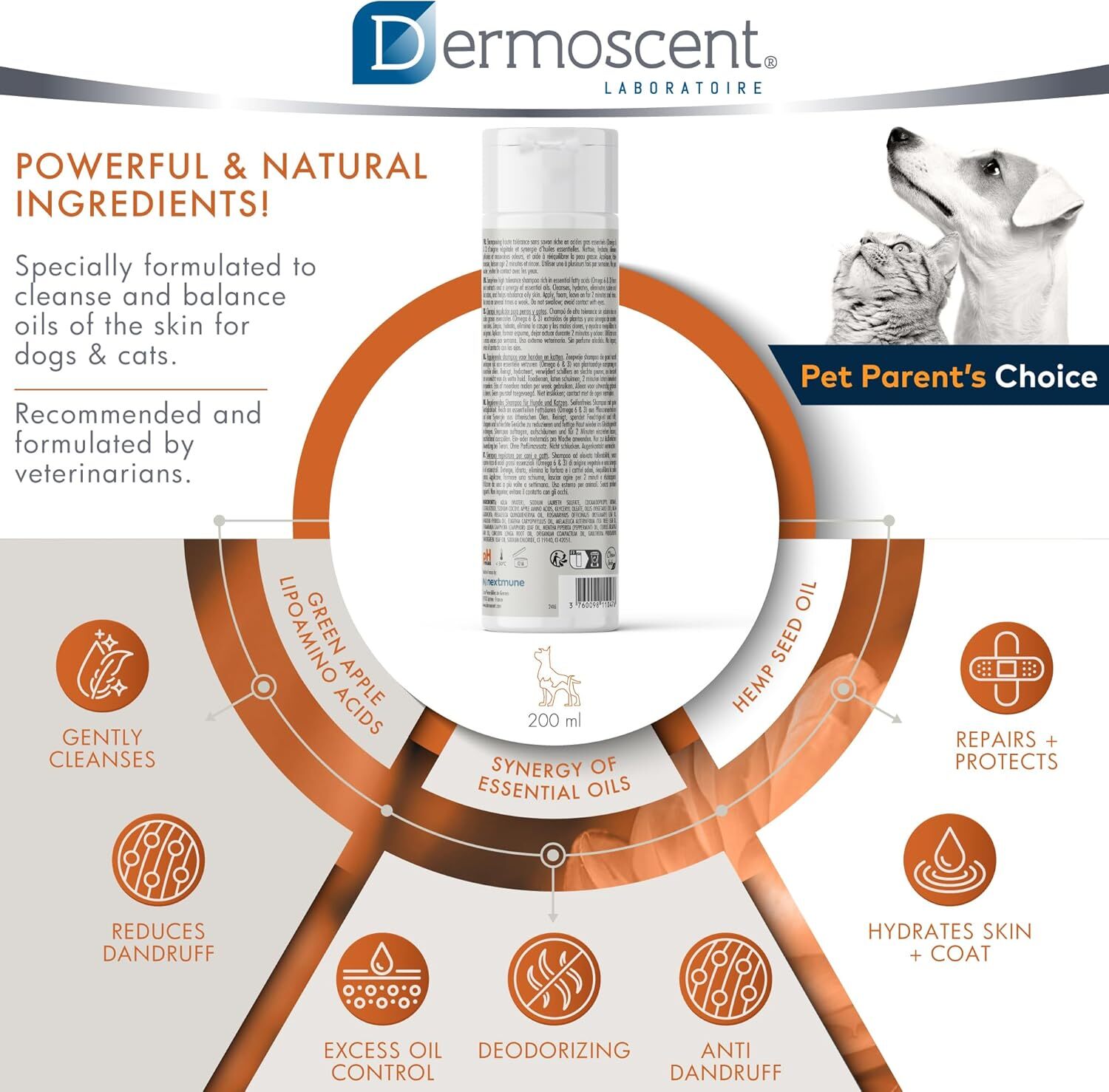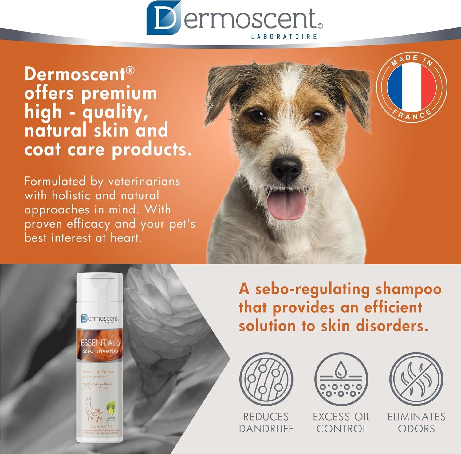 Állatorvosi vélemény: az állatok bőrének pH-ja eltér az emberétől, ezért mindig kifejezetten nekik kifejlesztett termékeket érdemes használni. A Dermoscent Essential 6 Sebo Shampoo ideális választás a kerato-szeborreás állapotok (korpásodás, zsíros vagy túl száraz szőrzet, kellemetlen szag) kezelésére, mivel természetes illóolajokat tartalmaz, amelyek szabályozzák a faggyútermelést és gátolják a korpa kialakulását. A természetes hatóanyagok nem elfedik, hanem semlegesítik a kellemetlen szagokat.