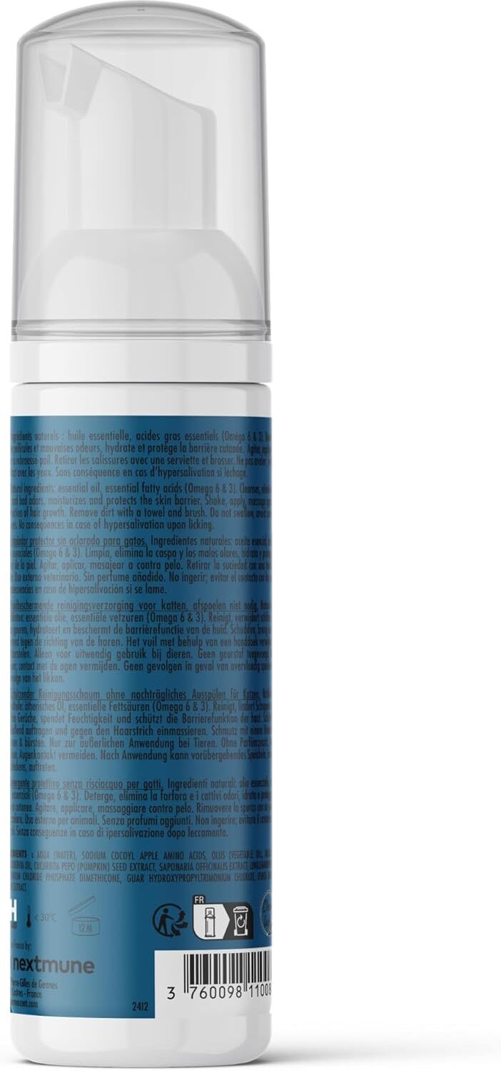 Hogyan és mennyit kell belőle használni: Használat előtt rázd fel a flakont. Nyomj habot a tenyeredbe, vagy közvetlenül a szőrzetre. Ügyelj rá, hogy a termék jól átitassa a területet. Finoman masszírozd be, lehetőleg a szőr növésével ellentétes irányban, hogy jobban megtisztítsa a bőrt. Kerüld a szemet és az orrot. A szennyeződést töröld le egy törölközővel, ezt követően a bundát hagyd megszáradni, majd fésüld át. Egyetlen pumpányi hab elég ahhoz, hogy a bunda puha, tiszta és kellemes illatú legyen – a Dermoscent Essential Mousse a bőrápolás és kényelem találkozása.