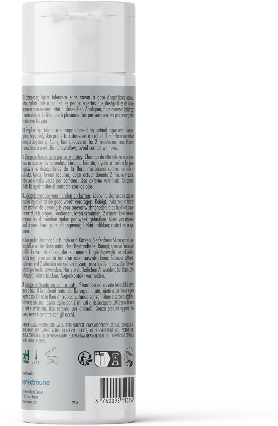 A Dermoscent PYOclean Shampoo kifejezetten olyan állatok számára készült, amelyek hajlamosak bőrflóra-egyensúlyzavarokra, például felszínes pyodermára vagy Malassezia-dermatitisre. A 100%-ban természetes eredetű hatóanyagokat tartalmazó, szappanmentes formula gyengéden, mégis hatékonyan tisztít, segíti a bőr mikrobiális egyensúlyának helyreállítását, miközben nem irritálja és nem szárítja a bőrt. A PYOclean Shampoo eltávolítja a szennyeződéseket, pörköket és kellemetlen szagokat, miközben támogatja a bőr természetes védőrétegét és hidratáltságát. Kiválóan alkalmas gyógysamponok kiegészítéseként a bőr regenerálására, illetve fenntartó ápolásra a fertőzések közötti időszakban.