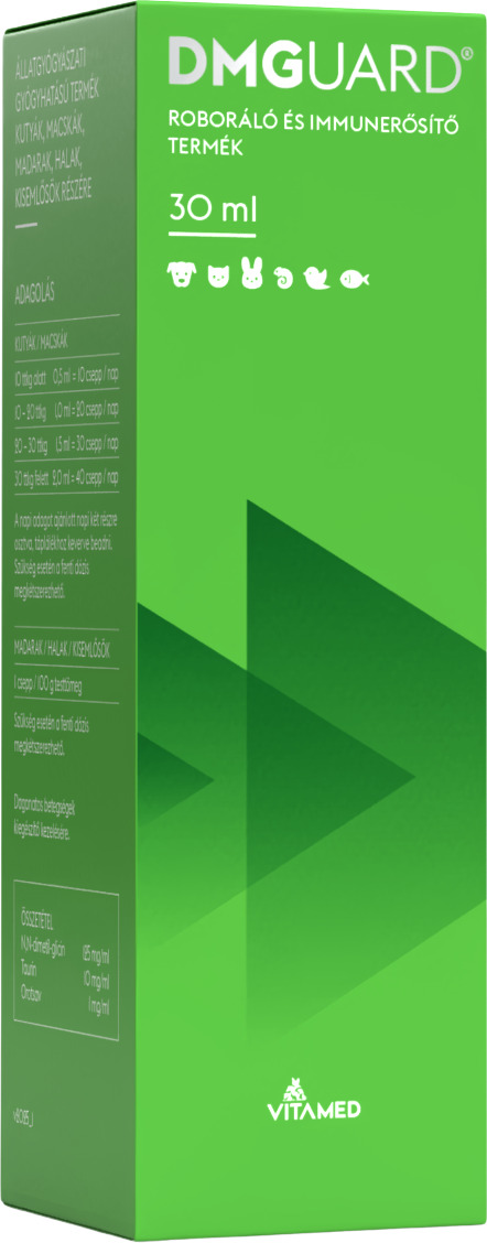 DMGuard roboráló és immunerősítő készítmény az immunrendszer és az anyagcsere támogatására kutyák, macskák, halak, kisemlősök és díszmadarak részére. A termék számos pozitív hatással bír, összetevőinek hatása összeadódik, illetve többféle úton hatva segíti az állatok egészségének fenntartását, a betegségek elleni küzdelmet.
