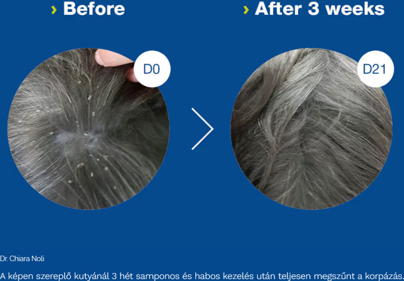 A korpásodás elleni hatás klinikailag igazolt. A fokozott hámsejtképződés és -elhalás következtében kialakuló hámpikkelyek mennyiségét a Douxo S3 Seb jelentősen csökkenti, így a szőr tisztább és rendezettebb megjelenésű lesz.