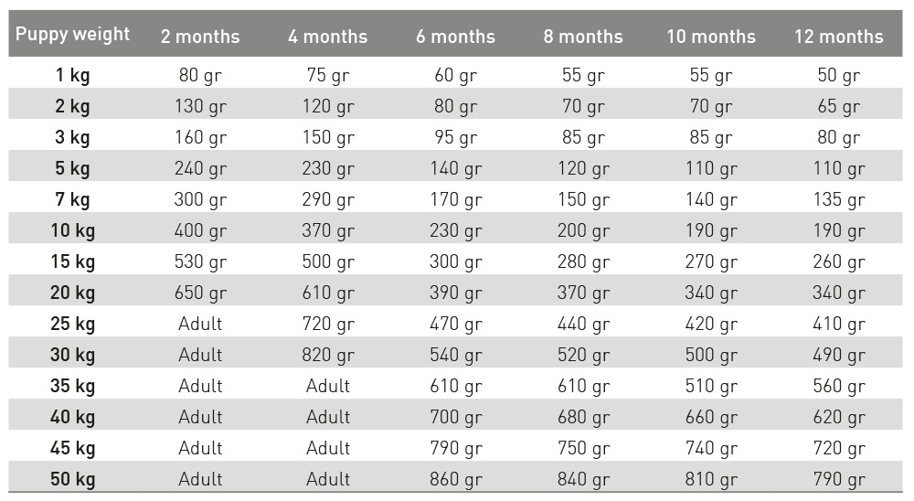 Etetési útmutató: A napi adagot a kölyök mérete, testsúlya és aktivitása alapján kell beállítani. 3–8 héten keresztül alkalmazzuk diétás eledelként intolerancia esetén: ha a tünetek megszűnnek, hosszú távon is etethető.