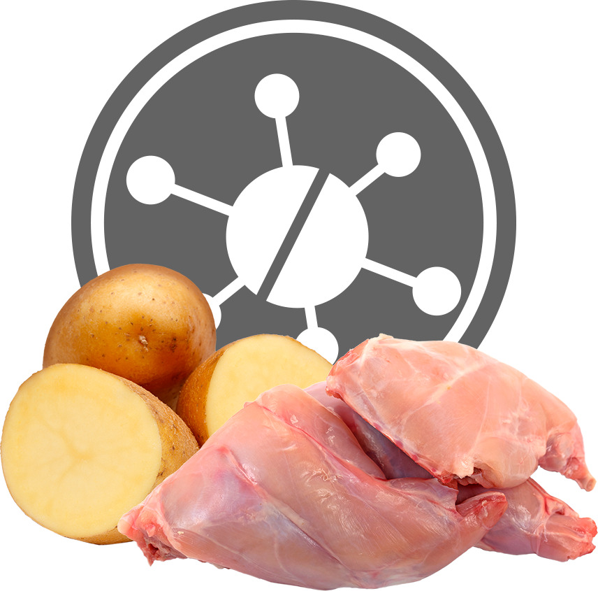Az Exclusion Dog Hypoallergenic Rabbit & Potato Medium & Large Breed célja, hogy táplálékérzékenység esetén nyújtson biztonságos alternatívát kutyáinknak. A formula monoprotein, az állati fehérje kizárólag dehidratált nyúl formájában szerepel, ami minimalizálja az allergiás reakciók kockázatát. A szénhidrátforrás burgonya (70%), jól tolerálható és emészthető.