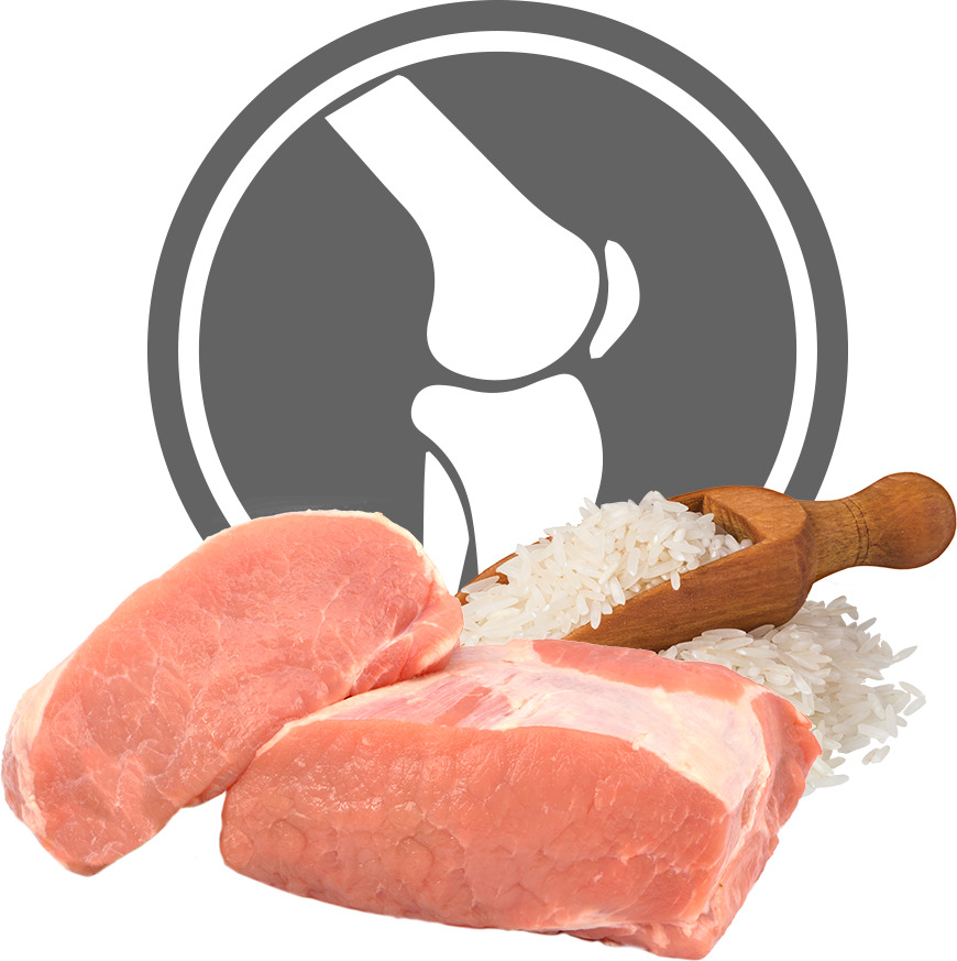 Az Exclusion Dog Mobility Pork & Rice Small Breed kifejezetten azon kutyák számára készült, akik osteoarthritis (ízületi kopás) vagy ízületi merevség jeleit mutatják. A termék monoprotein, azaz csak dehidratált sertés ad állati fehérjét, minimalizálva az allergiás reakciók lehetőségét.