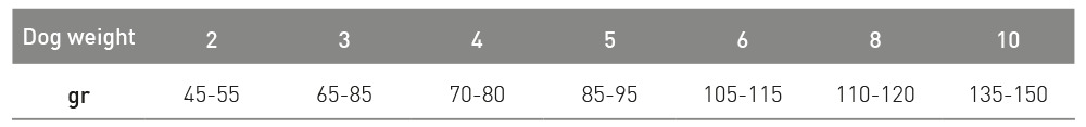 - A napi adagot a kutya mérete, testsúlya és aktivitása alapján kell beállítani.