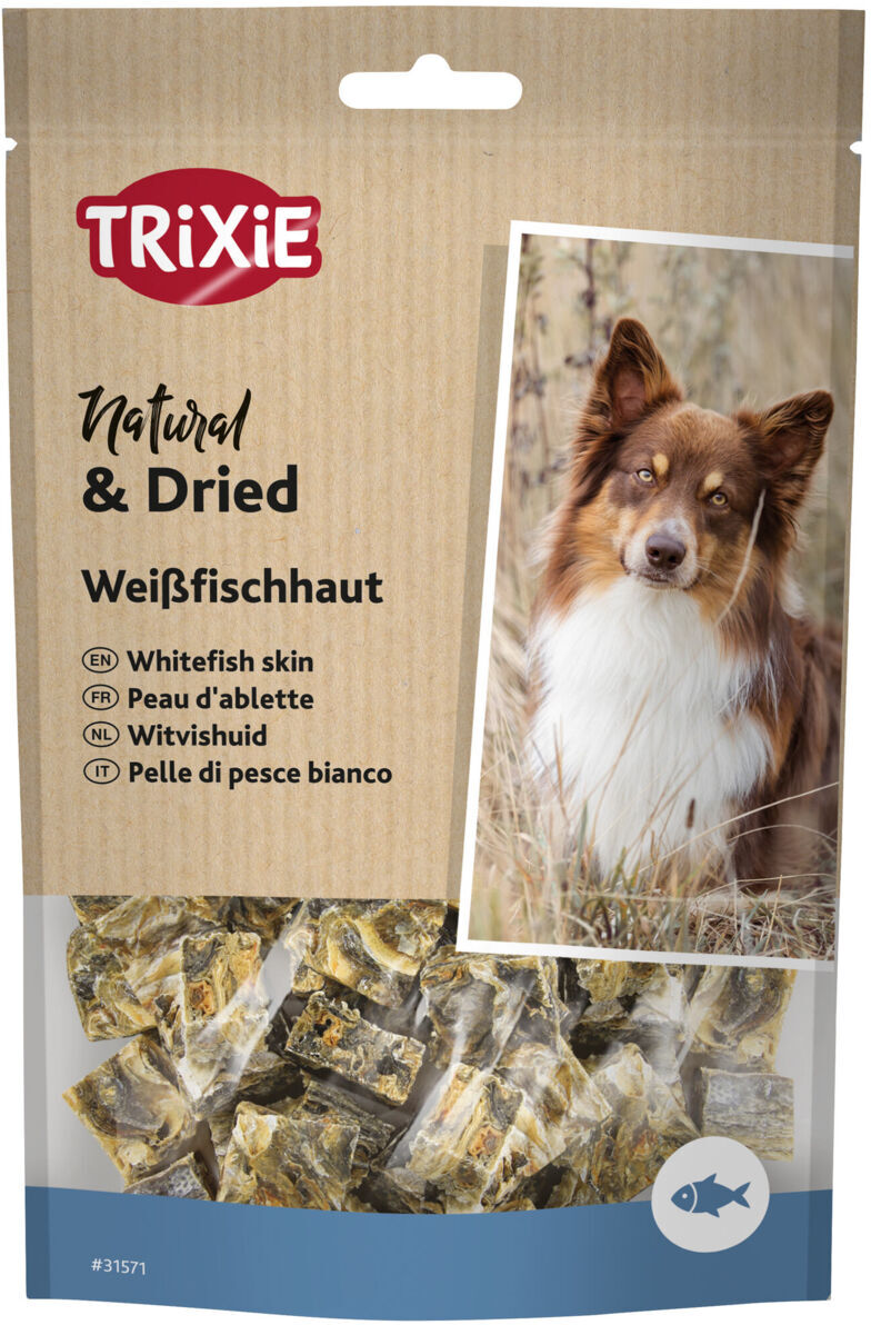 Összetétel: 100% fehérhúsú halbőr (omega-3-zsírsavak 0,9% und omega-6 zsírsavak 0,05%)