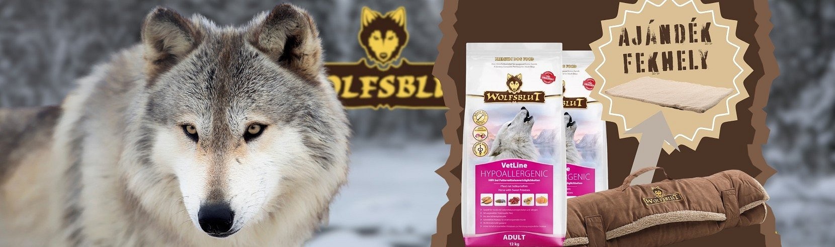 Aktuális promóciónk keretében a megjelölt két azonos ízű Wolfsblut tápok mellé egy 100 x 70 cm-es fekhelyet adunk ajándékba.